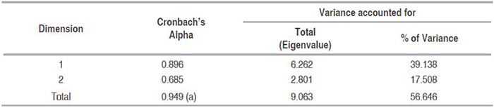 The data were submitted to analysis of variance, significant minimum differences and in some cases, the average Dunnett's test was applied by performing a previous analysis of the of the data normality parameters. Additionally, the data corresponding to the last sampling (sixth month) were submitted to Categorical Principal Components Analysis (CATPCA), using the statistical analysis program SPSS version 18 to determine the association between all variables.