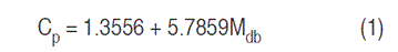 In the contour conditions of the models, for the thermal properties of the washing coffee, we used equations 1 and 2 proposed by Montoya et al. (1990), for the specific heat Cp, J kg−1 °K−1 ) and density of the coffee (ρC, kg m-3). These properties are functions of the moisture content of the product on a dry basis (Mdb, decimal dry basis).