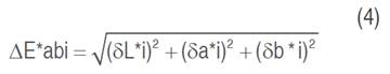 Color was measured with a Minolta CM 508-d spectrophotometer, using an observer angle of 10° illuminant D65, and specular component excluded. L*, a*, b*, hab, C*ab, and the total color difference (∆E*ab) were the color parameters evaluated. Luminosity varies from L*=100 (white) to L*=0 (black); the parameter Cab* indicates the chromaticity or saturation: hab is the hue angle, 0° (red), 90° (yellow), 180° (green), and 270° (blue). In total, 10 individual cubes were measured, and the mean value of those measurements was reported (Piagentini and Pirovani, 2017). Total color difference (∆E*ab) is defined by equation 4: