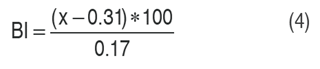 The surface color values of eggplants samples using a CR-300 Minolta Chroma Meter (Osaka, Japan) and the CIELAB color parameters, namely, L* (lightness), a* (red-green chromaticity), and b* (yellow-blue chromaticity) were determined. For that, a total of eight readings were taken from both sides of each eggplant slices from each experimental unit. The Browning Index (BI) was calculated as follows Equation (4) (Bal et al. 2011):