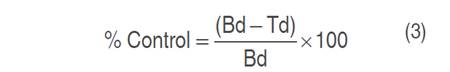 A completely randomized design (CRD) was applied with three treatments corresponding to EF, diluted EF, and chemical control. The response variable was the percentage of control. Data were analyzed with Minitab software version 2019, by analysis of variance (ANOVA) (P<0.05) and comparison of means by Tukey's method (P<0.05).
