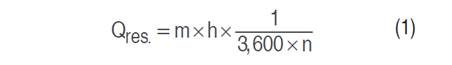 Where "Qres" is the Heat of respiration (W), "m" is the mass of tomatoes to be cooled (kg), "h" is the rate of respiration (J∙kg-1), and "n" is the operation time (hours).