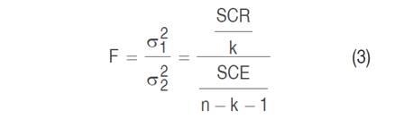 Where SCR is the sum of squares of the regression, SCE is the sum of squares of the residuals, n is the number of observations in the sample and k is the degrees of freedom.