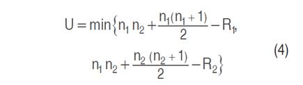 Where n1 and n2 are the sizes of the two samples, and R1 and R2 correspond to the sum of each of the samples.