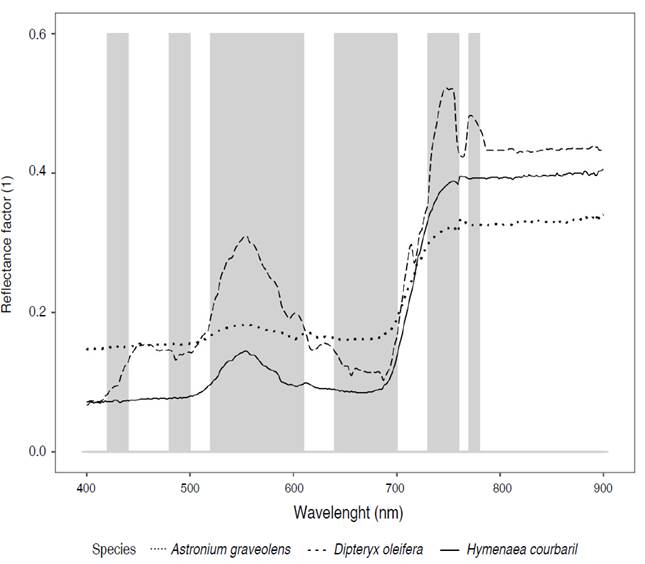 Leaf spectrum analysis of three tropical timber species: Diomate ( Astronium graveolens), Choibá (Dipteryx oleifera), and Algarrobo (Hymenaea courbaril)