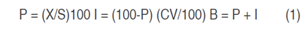 where, S = standard value, I = influence of the variation, P = percentage of the standard, CV = coefficient of variation and B = balance index. Standard values (S) and coefficients of variation (CV) were used according to Salazar-García and Lazcano-Ferrat (2001).