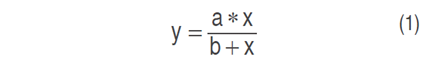 Wherein "y" is equivalent to the normalized data for the yield loss in comparison to the weed-free plots, expressed as a percentage (%); "a" is the maximum asymptote or yield loss when the weed density is close to the carrying capacity of the environment; "b" is the level of infestation that is equivalent to approximately 50% yield reduction, and "x" is the level of infestation. The critical level of damage (i) was then obtained by the ratio between parameters "a" and "b" of the equation, representing the impact of each plant on the crop yield.