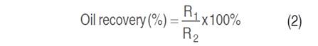 Where: R1 is the extraction oil yield obtained by supercritical extraction and R2 is the extraction oil yield obtained by Soxhlet using hexane.