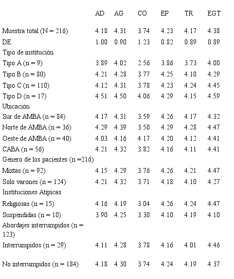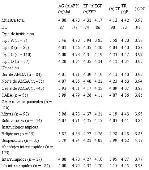 Con esta subescala se evaluó la satisfacción de elementos extra-terapéuticos, tales como las condiciones edilicias o las relaciones del paciente con sus compañeros.