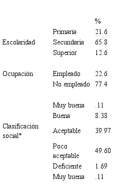 Los datos descriptivos sobre escolaridad, ocupación y clasificación social se resumen en la Tabla 1.