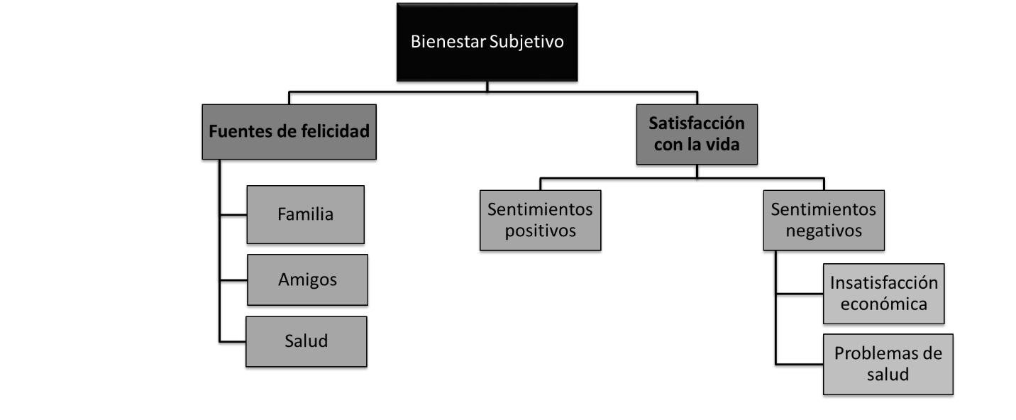 Desde la psicología económica, interesa entender los procesos psicológicos asociados con la adaptación de los sujetos envejecidos a las nuevas demandas y exigencias económicas, en quienes la calidad de vida juega un rol fundamental. Ahora bien, en el ámbito de la adaptación y la emocionalidad que conlleva, interesa focalizar en la valoración subjetiva que realizan, emergiendo el concepto de bienestar subjetivo. El bienestar subjetivo es definido como la evaluación que las personas hacen de sus vidas, y está compuesto de una dimensión cognitiva, denominada “satisfacción con la vida”, referida al grado con el cual una persona evalúa favorablemente su vida en su totalidad o en un área particular, en el momento presente, para lo cual se basa en su propio criterio y en experiencias pasadas (Diener, Emmons, Larsen y Griffin, 1985). También incluye una dimensión afectiva, denominada “felicidad”, relacionada con la frecuencia e intensidad de las emociones positivas y negativas, y su balance (Ballesteros, Medina y Caycedo, 2006; Cuadra y Florenzano, 2011; Denegri, García, González, Orellana, Sepúlveda y Schnettler, 2014; Edwards y Loprinzi, 2017; Moyano, Martínez y Muñoz, 2013; Pavot y Diener, 2008).