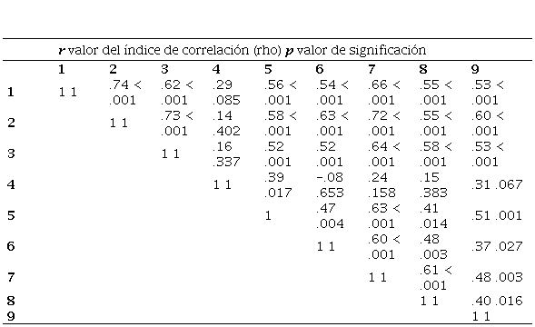 Una vez generadas las variables, se evaluaron los supuestos de normalidad y homocedasticidad. Al verificarse el no cumplimiento de tales supuestos para la mayoría de las variables, se procedió a implementar análisis no paramétricos. A fin de reducir el número de variables inicialmente generadas, se hizo una selección de ellas. Para ello, se realizó un análisis de correlación entre las variables según dominio cognitivo (i. e., las correlaciones fueron internas a cada dominio) mediante la prueba de Spearman. A pesar de la posibilidad de una redundancia en la información, se decidió no cruzar las correlaciones entre dominios debido al tamaño muestral bajo y a la imposibilidad de generar modelos complejos de análisis. Se identificaron aquellas variables con un alto y significativo grado de asociación (coeficiente de Spearman [rho] ≥ .50 y su valor de significación [p] < .05). En dichos casos, se seleccionó una sola de las variables asociadas en función a la que estaba mayormente asociada con las demás.