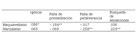 c) determinar las relaciones de la impulsividad con el narcisismo y el maquiavelismo, controlando la psicopatía.