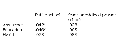 To identify the type of sectoral collaboration, the local agencies in charge of implementing the program were considered. Each school was associated with a partner in the public sector; Health, Social Services or Education. Schools with partners from other sectors (i. e. University) were discarded from the analysis, since there were so few cases.