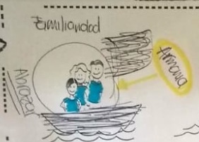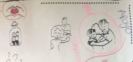 Seis familias aseguraron haber reaccionado con expresiones de apoyo incondicional hacia sus hijos e hijas, y entendieron la revelación de la orientación sexual como un proceso normal que no debía ser objeto de discriminación ni rechazo. Desde el discurso de Miguel (24 años, hijo de Nana): “Mi mamá apenas se dio cuenta también fue como, como me apoyó mucho y que igual, ella me apoyaba, como que me amaba, me decía que me amaba, me abrazaba”. Adicionalmente, Alicia-Cuidadora (63 años, madre de Mateo) representó en su línea de tiempo el apoyo que brindó a su hijo por medio de palabras como familiaridad, abrazar y armonía y con colores como el rosado, rojo, azul y amarillo (Figura 4 y Figura 4 cont.).