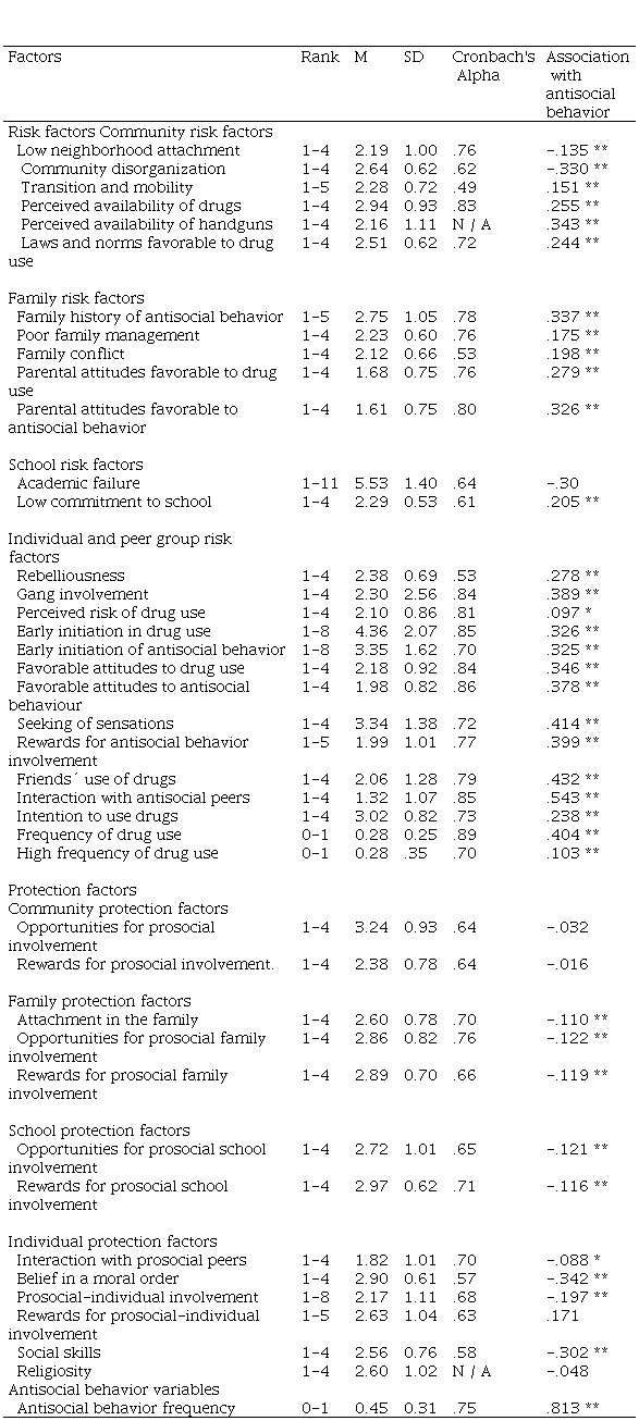 Risk and protection factors associated with antisocial behavior.
