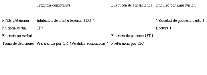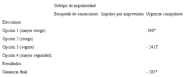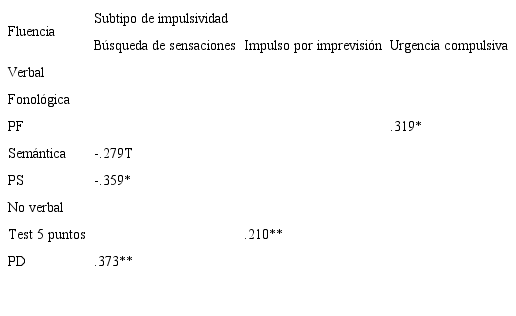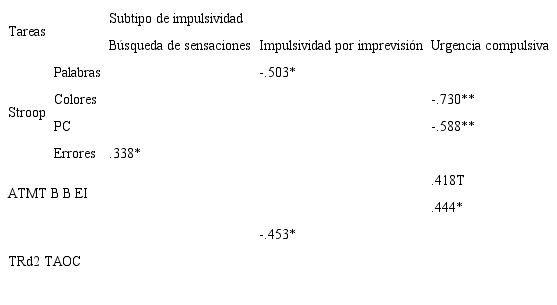 Se utilizó el coeficiente producto – momento de Pearson para detectar los efectos de los subtipos de impulsividad y las variables neuropsicológicas. En este caso, se utilizaron correlaciones parciales para controlar los efectos de los otros subtipos de impulsividad no estudiados en la correlación.