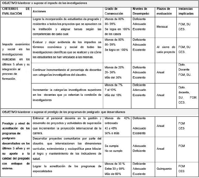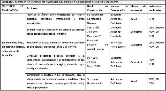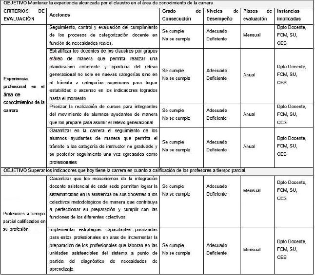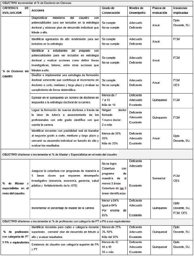 Teniendo en cuenta los referentes anteriores se plantea como objetivo de esta investigación diseñar una estrategia para asegurar la sostenibilidad del claustro en la carrera de Medicina a partir del plan de mejoras.