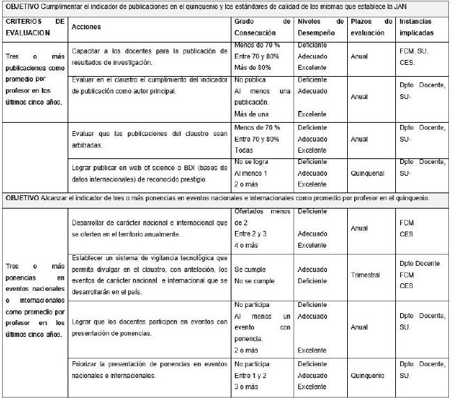 En la estrategia se da salida a cada uno de los indicadores con sus diferentes criterios de evaluación, aun cuando no responden a problemas priorizados porque no constituyen debilidades del claustro, pero sí se requiere mantener o superar los estándares alcanzados.