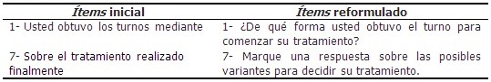 La validación de contenido realizada por el GE-2, tuvo como resultado la sugerencia de reformular las preguntas 1 y 7. (Tabla 4).