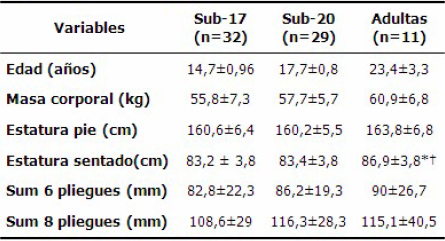 (†) Diferencias significativas (p<0,05) mayor que la Sub 20. ANOVA, una cola, no pareada.