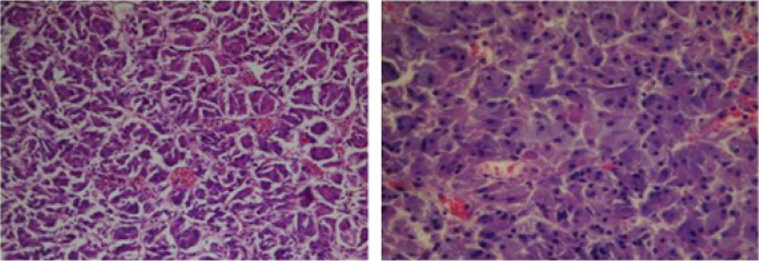 Los estudios histológicos de este caso arrojaron resultandos en congruencia con el feocromocitoma. (Figura 4)