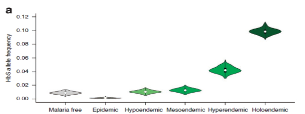 El estudio mostró que el gen de células falciformes es más común en el África subsahariana, Oriente Medio y la India, y que las áreas de alta frecuencia de este gen son coincidentes con los niveles históricamente altos de la malaria, lo que confirma la malaria hipótesis en una escala global.