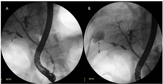 En un trabajo realizado por Sayar y colaboradores,(1) se incluyó un total de 31 pacientes (10 hombres y 21 mujeres). La CPRE se realizó para la fuga biliar después de la colecistectomía en 20 pacientes, después de la operación del quiste hidatídico en 10 pacientes, y después de la resección hepática en un paciente. Los signos y síntomas clínicos de la entidad incluyeron dolor abdominal, drenaje biliar por drenaje percutáneo, peritonitis, ictericia y bilioma, coincidente con lo observado en los casos presentados. Doce (60 %) pacientes fueron tratados con esfinterotomía endoscópica (EE) y catéter de drenaje nasobiliar (CDN), 7 (35%) con EE y prótesis biliar, y un paciente (5 %) fue tratado solamente con EE. La eficacia del tratamiento fue del 100 % en todos los casos.