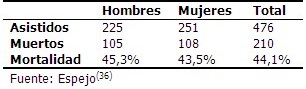 En lo que respecta al Lazareto se pueden observar los datos, en la Tabla 5, sobre la cantidad de muertos según género. En la Tabla 5 se expresan los dados de mortalidad ocurridos en el lazareto, pudiendo determinar que el 44 % de los afectados fallecieron. El lazareto no poseía los medios de tratamiento adecuado, sino solamente un reposario para los ya contagiados que en su defecto, eran los “sin profesión”, posiblemente.