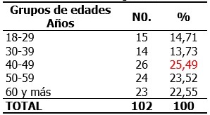 Los traumatismos predominaron en pacientes con edades superiores a los 40 años, fundamentalmente entre 40 y 49, seguidos de los de entre 50 y 59. (Tabla 1).