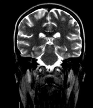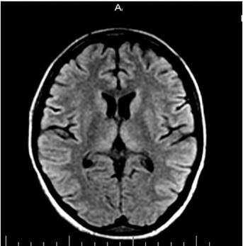 Se decidió ingreso en servicio de Neurología con Impresión diagnóstica de Síndrome de Guillain Barré. En Sala de Neurología se constata empeoramiento del cuadro neurológico y se decide traslado a Unidad de Cuidados Intensivos Polivalente (UCIP) donde se realiza RMN de cráneo, la cual informa: