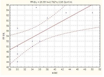 La correlación de variables evidenció una relación positiva entre la edad y el funcionamiento familiar (r=0,71). (Gráfico 1).