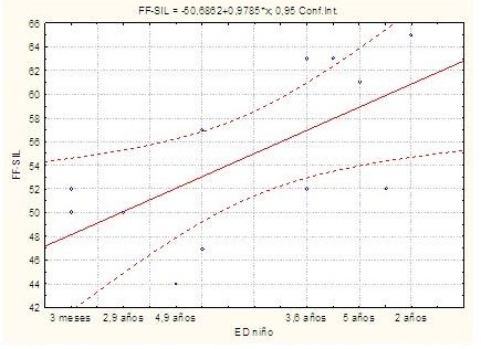 Se obtuvo además una relación positiva entre la ED del niño y el funcionamiento familiar (r=0,67). (Gráfico 2).