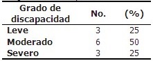 Según referencias de los CP, 50 % de los niños tenían un grado moderado de discapacidad. (Tabla 4).