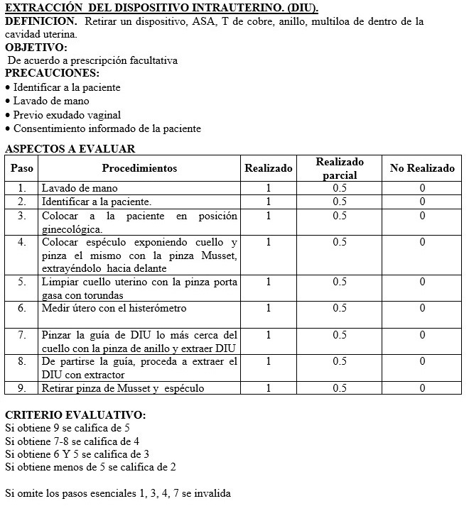 Conclusion: the guide is easy to apply and allows identifying the resident´s difficulties during the execution of the procedure. Its systematic implementation contributes to the diagnosis of learning needs.
