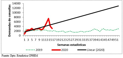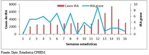 Conclusions: the behavior of acute respiratory infections was within the expected parameters, except that from week eleven there was an increase in medical care, which could be related to the inquiring and surveillance actions.
