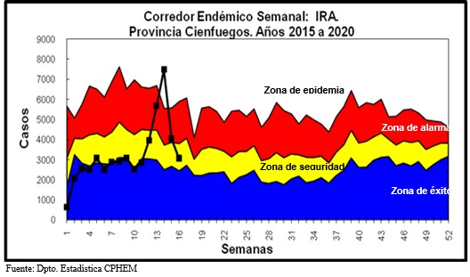 Methods: the population studied was the population of the Cienfuegos province. The main study variables considered were: age groups, municipalities of residence, demand for medical consultations, statistical weeks, rates temporal variation, their trend, severity of clinical evolution, admissions and deaths from severe respiratory infections, outbreaks and epidemiological surveillance. Statistical methods and techniques used were, from descriptive statistics: absolute and relative frequencies, means, rates, increases and decreases in rates, the endemic corridor and its trend.