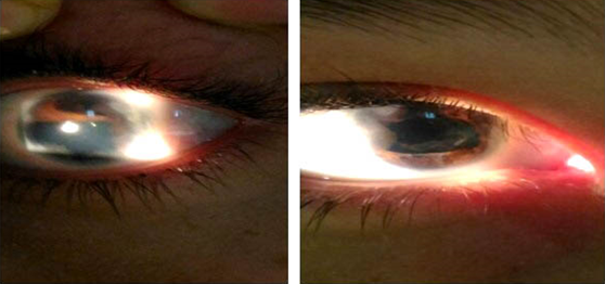 Ya en estos momentos la paciente presenta complicaciones propias de la evolución de la entidad como es el glaucoma secundario dado por todas las malformaciones a nivel del segmento anterior y del ángulo camerular que coexisten.
