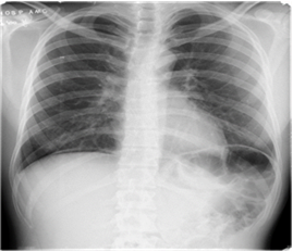 El examen físico reveló como datos positivos abdomen contracturado, que no sigue los movimientos respiratorios, muy doloroso a la palpación y se constata borramiento de la submatidez hepática a la percusión. Tensión arterial: 110/ 70 mmHg, frecuencia cardíaca: 115 latidos por minuto, frecuencia respiratoria: 22 por minuto.