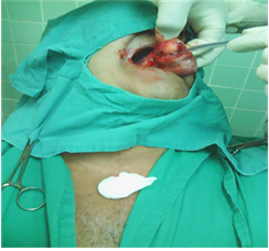 Este tipo de cirugías puede ocasionar complicaciones .En este paciente satisfactoriamente no ocurrió ninguna de ellas, por lo que se procedió a hacer hemostasia con suturas sin involucrar planos profundos, puesto que no lo ameritaba la ocasión. La figura No 6 muestra las características macroscópica una vez extirpada la lesión.