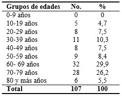 El grupo de edad más representado fue el correspondiente a 60-69 años, con el 29,9 %, seguido del de 70-79 años (26,2 %). De manera general, se observó que la mayoría de las consultas fueron solicitadas por adultos mayores (60 años y más), cuya suma general ofreció el 61,6 % del total de llamadas atendidas. (Tabla 1).
