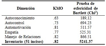 En primer lugar, se calculó la medida de adecuación de la muestra de Kaiser-Meyer-Olkin (KMO) y la prueba de esfericidad de Bartlett. (Tabla 1).