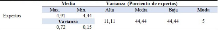 Validez de contenido: se determinó a partir del criterio de expertos.