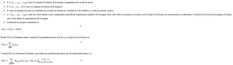 El objetivo de Graph Cut es encontrar la segmentación que minimiza globalmente la energía 𝐸 𝐿 , de todas las posibles segmentaciones 𝐿, satisfaciendo algunas restricciones.