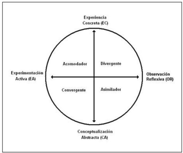 Cuando fue aplicada la rueda del aprendizaje de Kolb, predominó el tipo de alumno teórico o convergente. Este alumno tiende a integrar la información convirtiéndola en teorías complejas y con una lógica fundamental sólida. Su pensamiento se organiza de forma secuencial, recorriendo una serie de pasos antes de generar cualquier tipo de conclusión. Prefieren examinar y resumir toda la información, valoran por encima de todo, la lógica y la razón, por lo que se sienten desorientados ante actividades que no poseen una lógica evidente. Le siguieron en orden cuantitativo los alumnos pragmáticos o acomodadores y luego los alumnos activos o divergentes. Ningún estudiante se caracteriza como alumno reflexivo o asimilador.