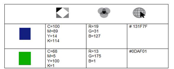 Se utilizan dos colores en la confección de la imagen de la Campaña visual: azul y verde. También se hace presente el uso del color blanco aplicada en positivo en el interior y como borde exterior del texto 40 Años. Este último, físicamente, no es considerado color, pero es percibido y provoca estímulos visuales. (Fig. 3).