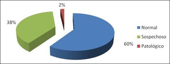 En la mayoría de los pacientes el examen neurológico inicial resultó normal, con 38 % de los pacientes con examen sospechoso y solo un paciente con examen neurológico patológico. (Fig. 1).