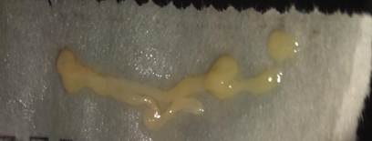 Con la sonda mejoraron los síntomas, pero a la 23 sesión de radioterapia, hubo que suspenderlas pues el paciente estaba presentando tenesmo vesical doloroso (deseos de orinar con pujos), que se manifestaban en forma de crisis, como cólico uretral, dolor uretral, dolor en bajo vientre, coágulos finos que salían por la sonda, febrículas, orinas oscuras, fétidas, turbias; en mayor cuantía de noche que de día. Los síntomas se intensificaban al pasar los días, lo que hizo pensar que a los síntomas obstructivos bajos se le añadían los síntomas irritativos bajos producto de la radioterapia.