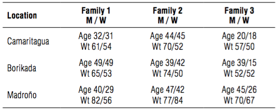 Finally, we point out that the highest energy expenditure was recorded in Borikada and La Madroño during the rainy period (June-July). This finding is similar to those of Bleiberg et al. (1980), who compared the energy expenditure in agricultural activities of 15 women. They found heavier investment during the rainy months than in the dry season, with values at 2,890 and 2,320 kcal, respectively.