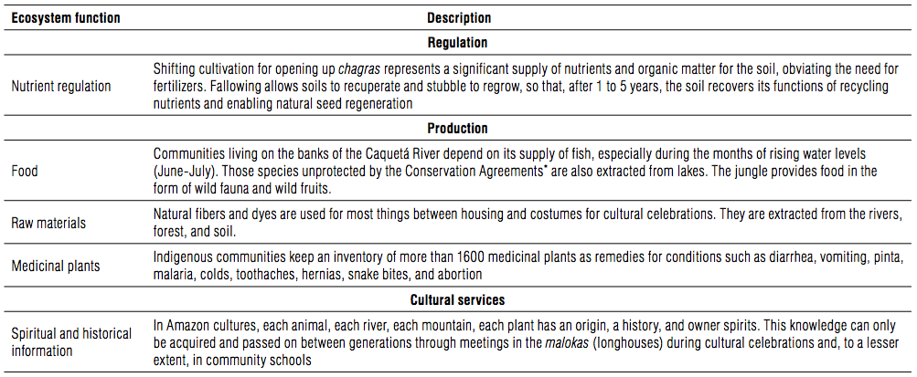 This study took place under the 'Attaining Sustainable Services from Ecosystems using Trade-off Scenarios' project (ASSETS; http://espa-assets.org/; NE-J002267-1), funded with support from the United Kingdom's Ecosystem Services for Poverty Alleviation program (ESPA; https://www.espa.ac.uk). ESPA receives its funding from the Department for International Development (DFID), the Economic and Social Research Council (ESRC) and the Natural Environment Research Council (NERC). Thanks to the communities Camaritagua, Borikada and Vereda La Madroño, and to AIPEA (Association of Traditional Indigenous Authorities of La Pedrera) for their interest and contribution in this study.